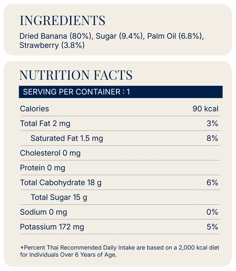 Luscious strawberry coating over sun-dried bananas delivers a fruity, refreshing crunch, a dreamy snack for every sweet tooth.
